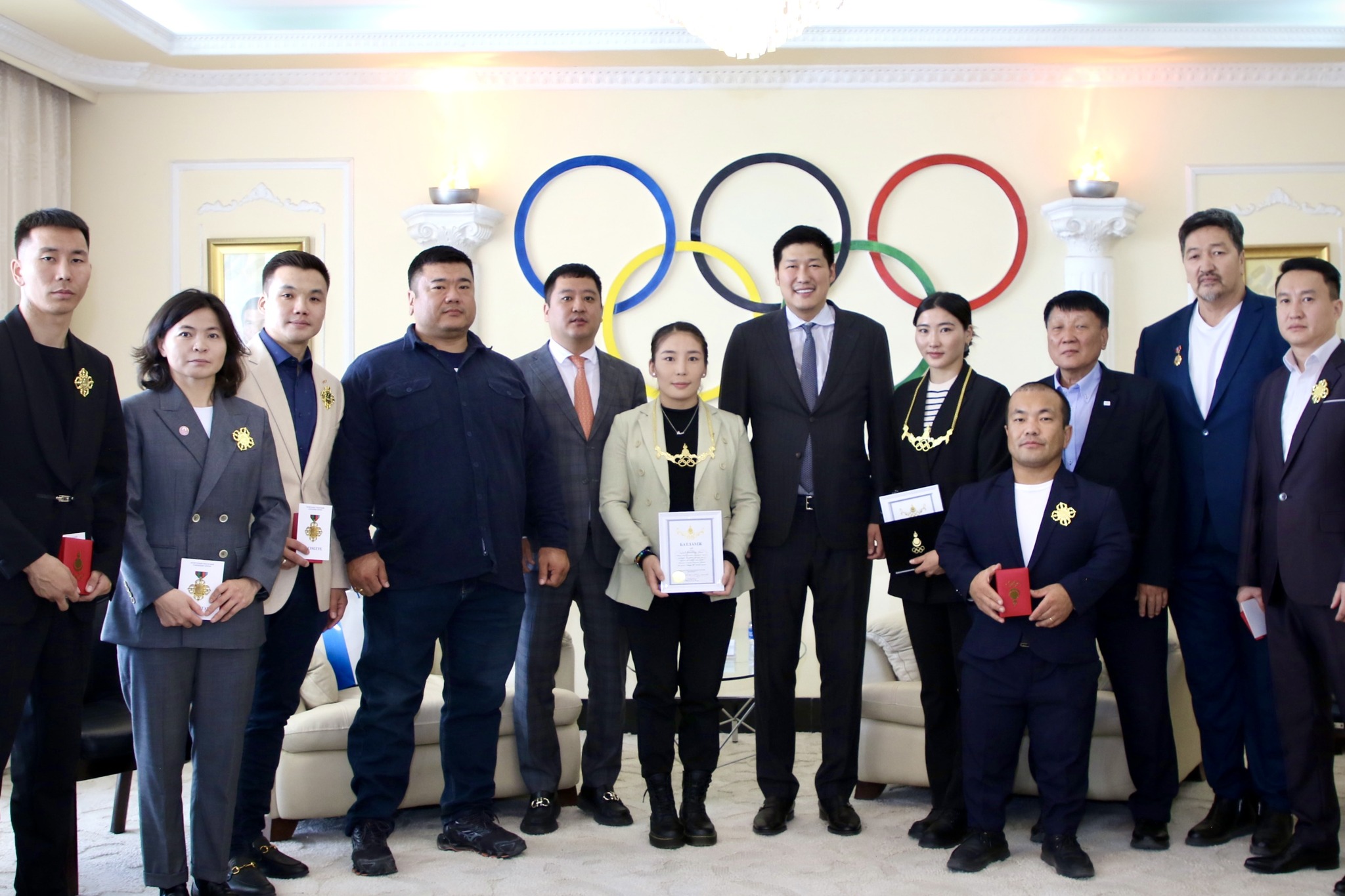 Хүн төрөлхтний эв нэгдлийн баяр Олимп, Паралимп, дэлхийн тавцанд Монгол хэмээх нэрээ дуурсгасан бидний бахархалт баг тамирчид өнөөдөр МҮОХ-ны тэргүүн дээд шагнал Алтан од, Алтан очир одонгоор энгэрээ чимлээ.