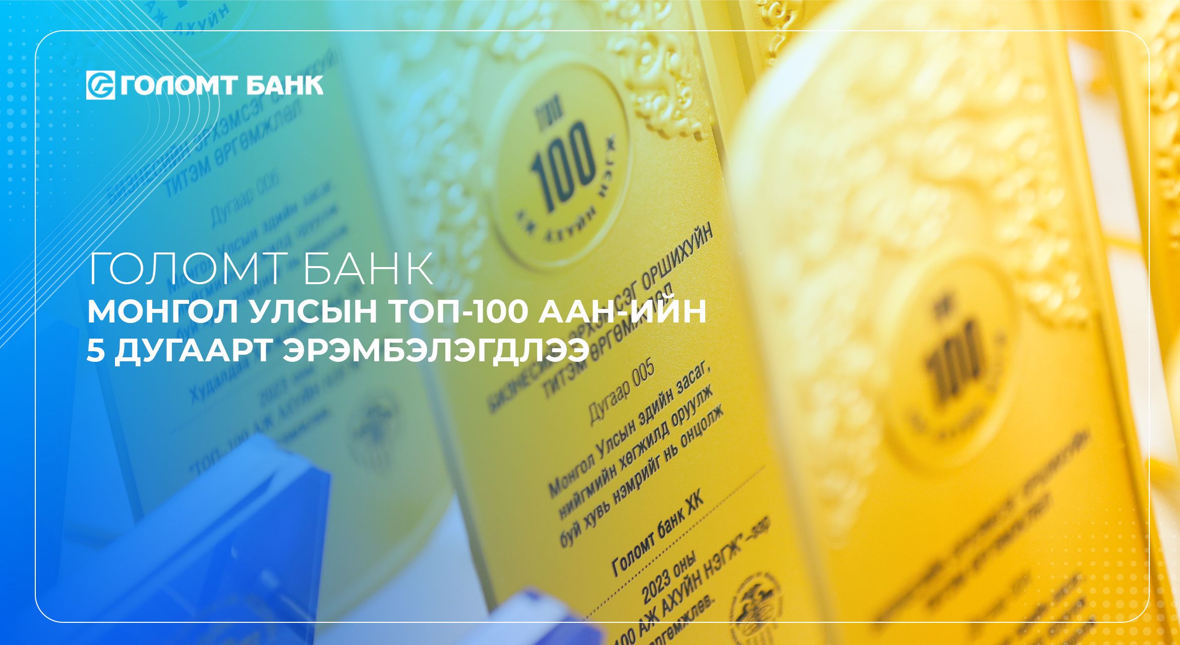 | ГОЛОМТ БАНК МОНГОЛ УЛСЫН ТОП-100 АЖ АХУЙН НЭГЖИЙН 5 ДУГААРТ ЭРЭМБЭЛЭГДЛЭЭ |