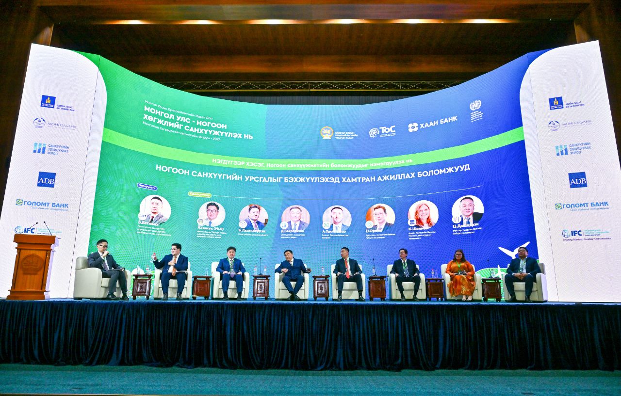 Жил бүр уламжлал болгон зохион байгуулагддаг “Монголын Тогтвортой Санхүүгийн Форум” арга хэмжээ “Монгол Улс – Ногоон хөгжлийг санхүүжүүлэх нь” сэдвийн хүрээнд өнөөдөр (2024.11.28) зохион байгуулагдлаа. Тус форумд Худалдаа, хөгжлийн банк ХК-ны Гүйцэтгэх захирал О.Орхон “Ногоон санхүүгийн урсгалыг бэхжүүлэхэд хамтран ажиллах боломжууд” сэдэвт панел хэлэлцүүлгээр оролцов.