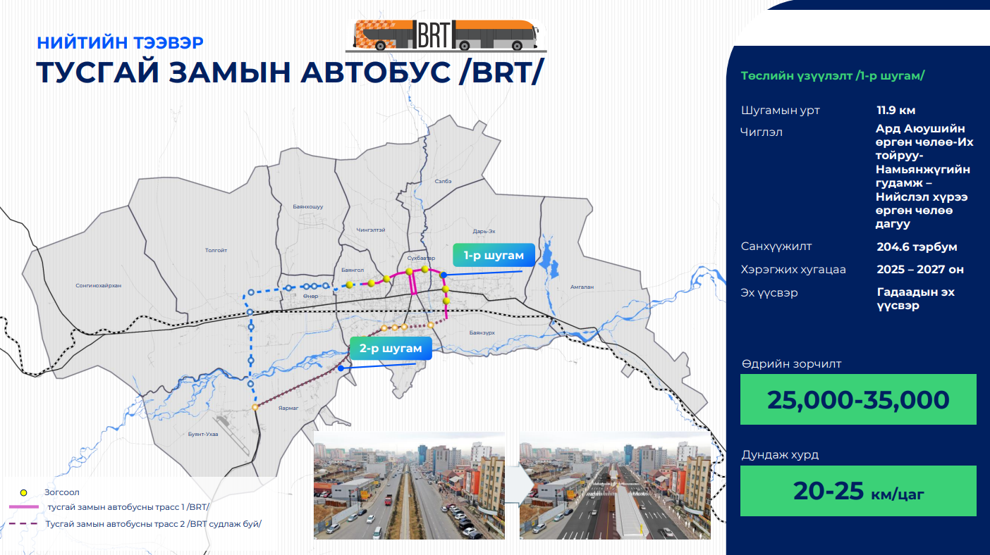 Түгжрэлийг бууруулах хүрээнд 2024-2028 онд нийслэлд их багтаамжийн олон төрөлт нийтийн тээврийн хэрэгсэл нэвтрүүлж, хоёр түвшний замуудыг барихаар төлөвлөж буй.