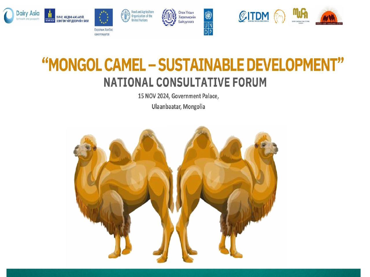 Олон улсын тэмээний жилийн хүрээнд Ази тивийн сүүний түншлэлийн Нарийн бичгийн дарга нарын газар, Хүнс, хөдөө аж ахуй, хөнгөн үйлдвэрийн яам, ЕХ-ны санхүүжүүлж, Нэгдсэн Үндэстний Байгууллагын Хүнс, хөдөө аж ахуйн байгууллагаас хэрэгжүүлсэн “Монгол Улсад тогтвортой хөгжлийн зорилттой уялдсан төсвийн төлөвлөлтөөр хөдөлмөр эрхлэлтийн шинэчлэлийг дэмжих” төслөөс хамтран “Монгол тэмээ – Тогтвортой хөгжил” үндэсний зөвлөлдөх форумыг 2024 оны 11 дүгээр сарын 15-ны өдөр Төрийн ордонд зохион байгууллаа.
