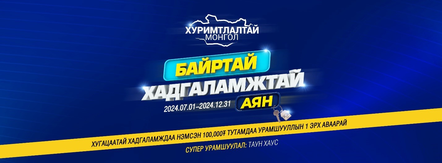 ХХБ-с санхүүгийн боловсролтой, зөв дадалтай Хуримтлалтай Монгол иргэдийг бий болгох зорилгоор жил бүр зохион байгуулдаг “ХУРИМТЛАЛТАЙ МОНГОЛ” урамшуулалт аян зарладаг билээ. Тус урамшуулалт аяны 2024 оны эхний улирлын супер шагнал болох ТАУН ХАУС-н эзэн өнгөрсөн долоодугаар сард тодорсон. Тэгвэл энэ удаад “Хуримтлалтай Монгол – 2024” урамшуулалт аяны 2 дахь ТАУН ХАУС-н эзэн тодроход цөөхөн хоног үлдээд байна.