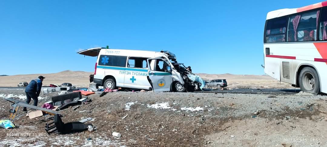 | Түргэн тусламжийн машинтай мөргөлдсөн автобус 64 км/ц хурдтай явж байжээ |