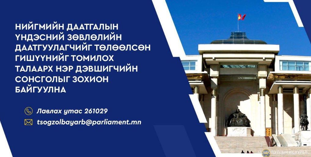 Шуудангийн хаяг: 14201 Улаанбаатар хот, Сүхбаатар дүүрэг, Жанжин Д.Сүхбаатарын талбай 1, Төрийн ордон-312, Нийгмийн бодлогын байнгын хороо. /Лавлах утас: 51-261029/