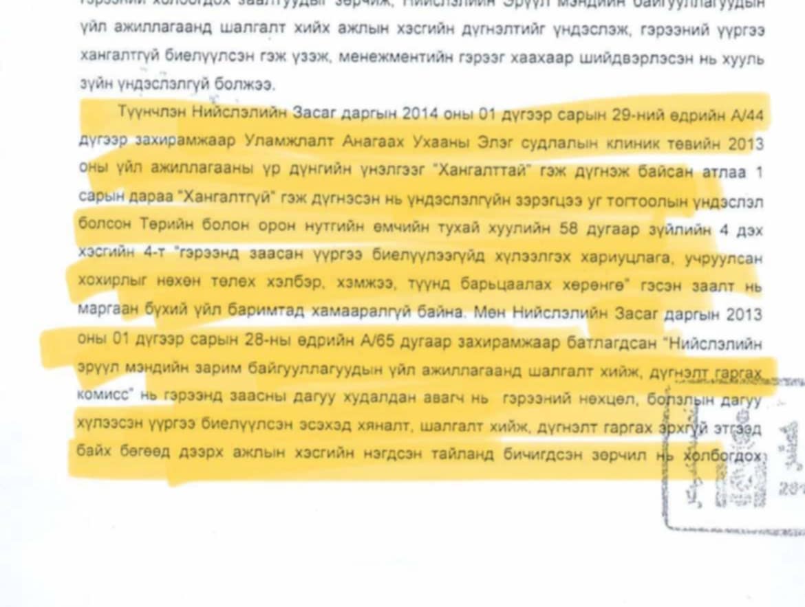 Монгол Улсын Дээд шүүхийн хяналтын шатны захиргааны хэргийн шүүхийн шүүх хуралдааны 127 дугаар тогтоолыг тоглоом мэтээр тохуурхан үл ойшоож, яг эсрэгээр эмнэлэг сувилалын үйл ажиллагаа бүгд хууль бус хэмээн мэдэгдэл хийж, цагдаа дагуулж эмч нар, эмнэлгийнхэн, хэвтэн эмчлүүлж байгаа өвчтэй хүмүүсийг айлгаж, хууль бусаар хүчирхийллийн аргаар олон түмэнд үйлчилдэг эмнэлэг сувиллыг булааж авснаа ингэж хүн гүтгэж, худал мэдээллээр далдлах гэж оролдож байна гэдгийг эмч нар хэлж байна.