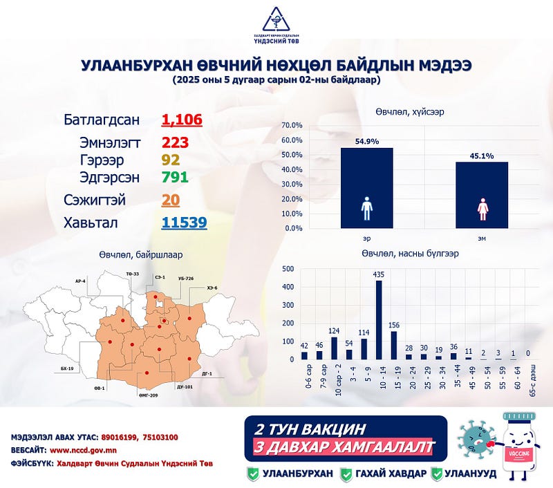 | ХӨСҮТ: Улаанбурхан өвчний лабораториор батлагдсан тохиолдол 1106 болжээ |
