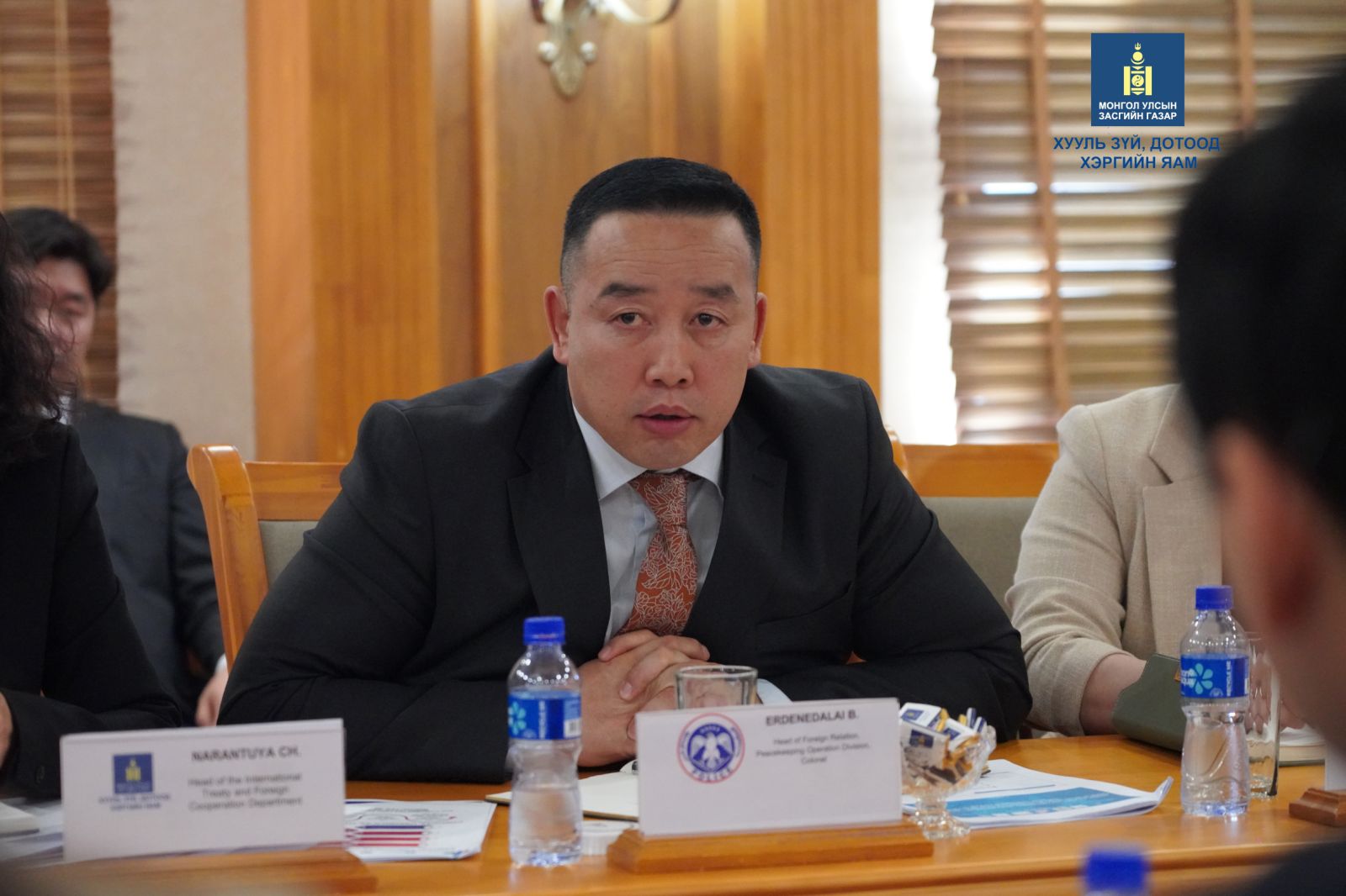 Тэрээр Монгол Улс, Америкийн Нэгдсэн Улс хооронд иж бүрэн түншлэлийн харилцаа бүхий л салбарт тогтвортой хөгжиж, тэр дундаа хоёр улсын хууль, эрх зүйн салбарын харилцаа өргөжиж байгаад сэтгэл хангалуун байна. АНУ-ын Төрийн департаментын Мансууруулах бодистой тэмцэх, хууль сахиулах асуудал эрхэлсэн олон улсын товчоо (INL)-ноос тус яамны харьяа Цагдаагийн ерөнхий газар, Шүүхийн шийдвэр гүйцэтгэх ерөнхий газар, Дотоод хэргийн их сургуулийн алба хаагчдын мэдлэг, ур чадварыг дээшлүүлэх, тодорхой төрлийн гэмт хэрэгтэй тэмцэх арга барил эзэмших, харилцан туршлага солилцох хамтын ажиллагаа өргөжин тэлж буйд талархлаа илэрхийллээ.