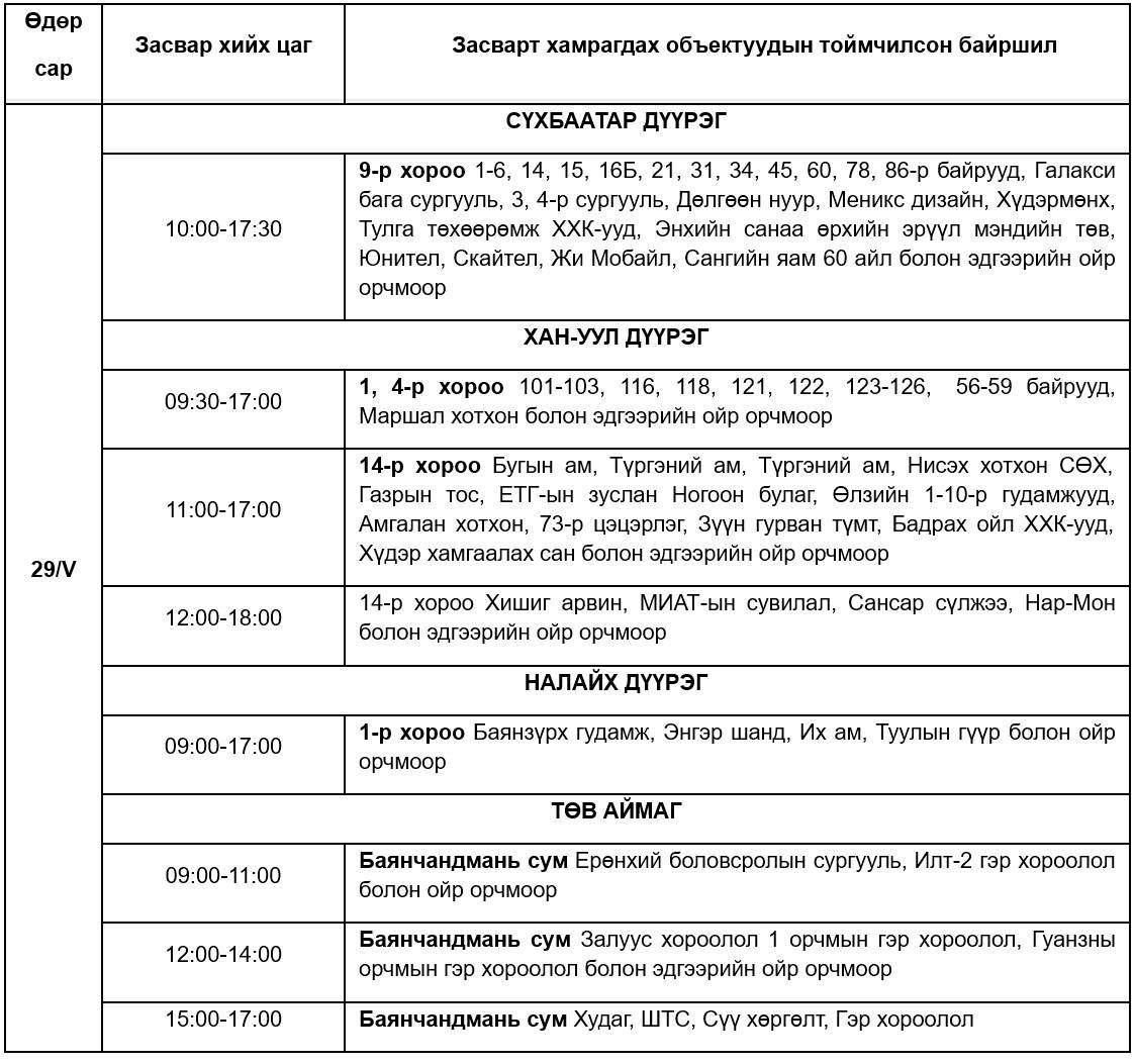Цахилгааны хязгаарлалт хийх өнөөдрийн хуваарийг хүргэж байна.