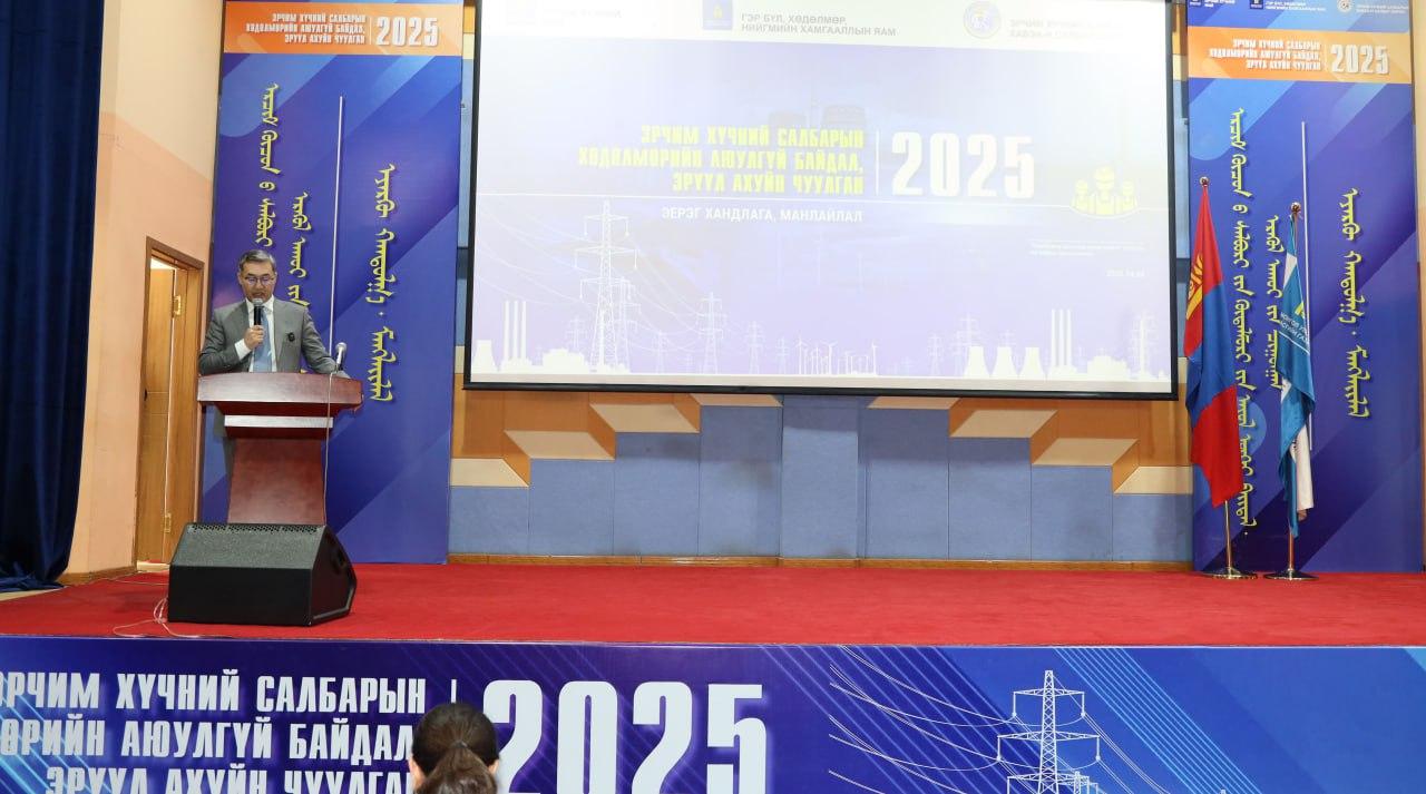 Эрчим хүчний салбарын ажилтнуудын хөдөлмөрийн эрүүл мэнд, аюулгүй байдал, үйлдвэрлэлийн осол, хурц хордлого, мэргэжлээс шалтгаалсан өвчнөөс урьдчилан сэргийлэх, салбарын тулгамдаж буй асуудлуудыг хэлэлцэж, цаашид авах арга хэмжээг тодорхойлох зорилгоор Монгол Улсын Эрчим хүчний яам, Гэр бүл, хөдөлмөр нийгмийн хамгааллын яамнаас хамтран зохион байгуулж буй “Хөдөлмөрийн аюулгүй байдал, эрүүл ахуйн чуулган 2025” өнөөдөр УБЦТС ТӨХК-д болж байна.