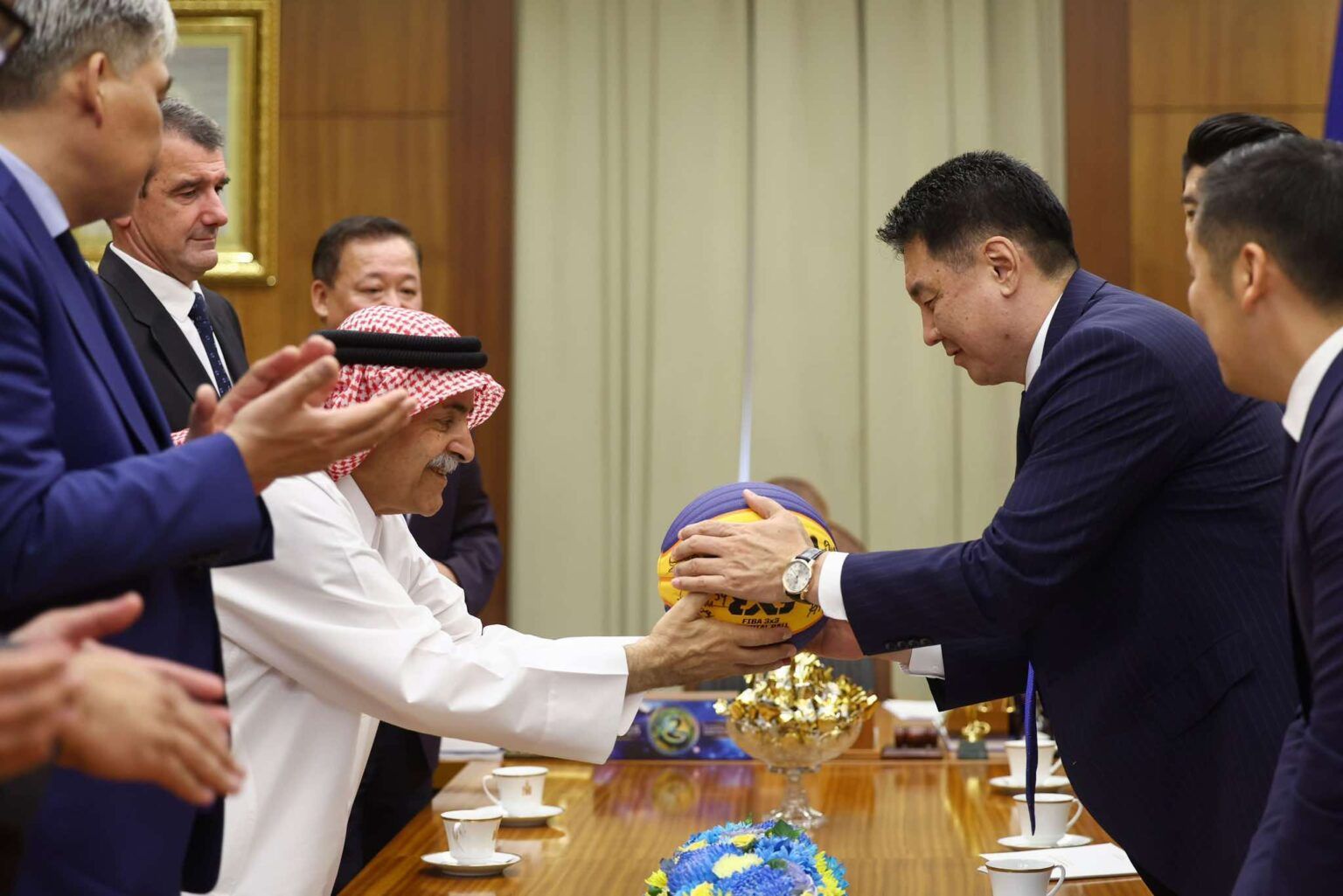 Монгол Улсын Ерөнхийлөгч өнөөдөр Олон улсын сагсан бөмбөгийн холбооны (FIBA) Ерөнхийлөгч Шейх Сауд Али Аль Тани болон тус холбооны 3х3 төрөл хариуцсан гүйцэтгэх захирал Алекс Санчес Моллингер нарыг хүлээн авч уулзжлаа. Уулзалтын үеэр талууд Монгол Улсад сагсан бөмбөгийн спорт, тэр дундаа 3х3 төрлийг хөгжүүлэх, хүүхэд залуучуудын идэвх оролцоог нэмэгдүүлэх, спортын дэд бүтцийг өргөжүүлэх чиглэлээр хамтран ажиллах боломжийн талаар санал солилцлоо. Ерөнхийлөгч У.Хүрэлсүх Монголын баг тамирчид дэлхийн түвшинд амжилттай өрсөлдөж, сагсан бөмбөгийн спортоор олон улсын тэмцээнүүдэд амжилт гаргаж буйг онцлон тэмдэглэв. Түүнчлэн FIBA-гаас манай улсад хэрэгжүүлж буй хөтөлбөрүүд болон цаашид хамтын ажиллагааг улам өргөжүүлэх талаар санал солилцлоо.