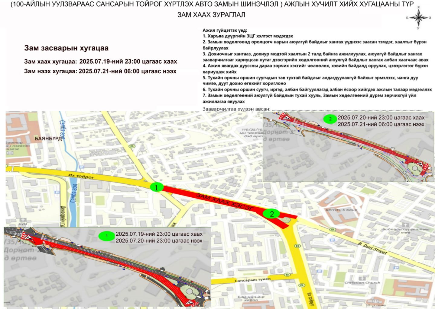 | Дарь-Эхийн уулзвараас Сансарын аюулгүй тойрог хүртэлх замыг хааж, шинэчилнэ |
