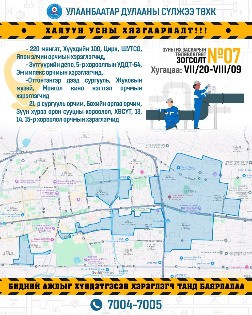 Зуны их завсарын төлөвлөгөөт зогсолтын хүрээнд 2025 оны долоодугаар сарын 20-ны өдрөөс 2025 оны наймдугаар сарын 09-нийг дуустал дараах бүсчлэлд хэрэглээний халуун усны хязгаарлалт хийгдэнэ.
