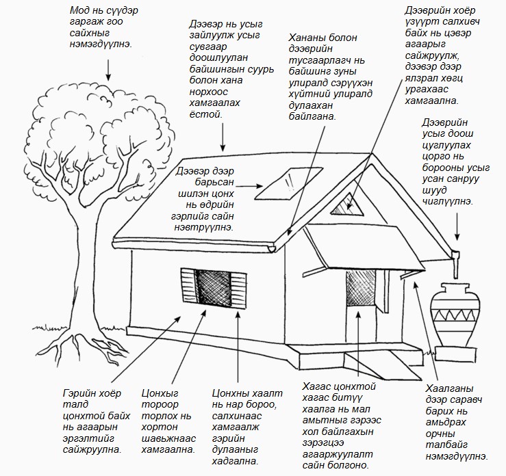 Дээвэрт ус, чийг нэвчих, мөөгөнцөр үүсэхгүй байхыг анхаар. Засвар хийхдээ дээврийг цэвэр, усны хамгаалалттай, хорт шавж, хорт бодисгүй, дулааны алдагдалгүй байлгах. Шинэ, бат бөх материал ашиглан стандарт хангасан хийх.