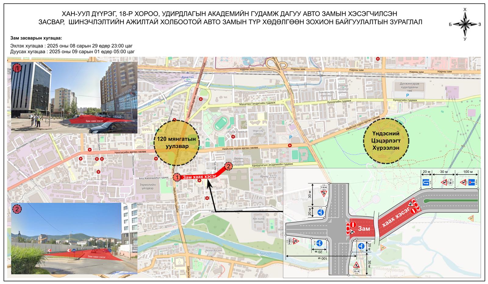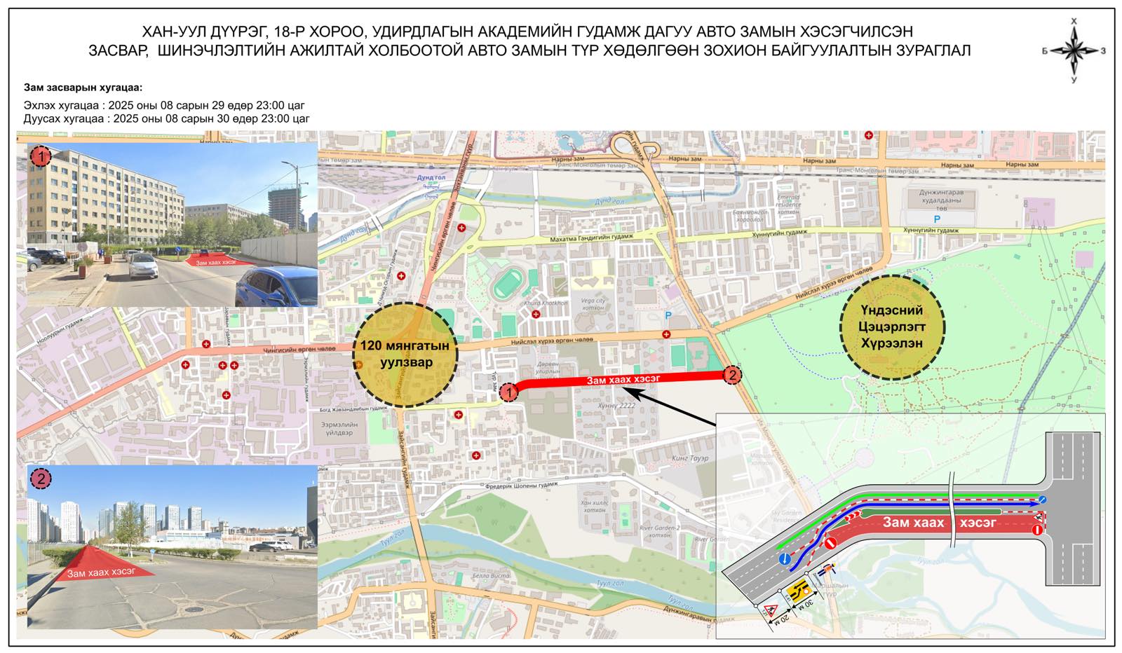 | Их Монгол Улсын гудамжнаас Оргил худалдааны төвийн уулзвар хүртэлх замыг хэсэгчлэн хааж шинэчилнэ |