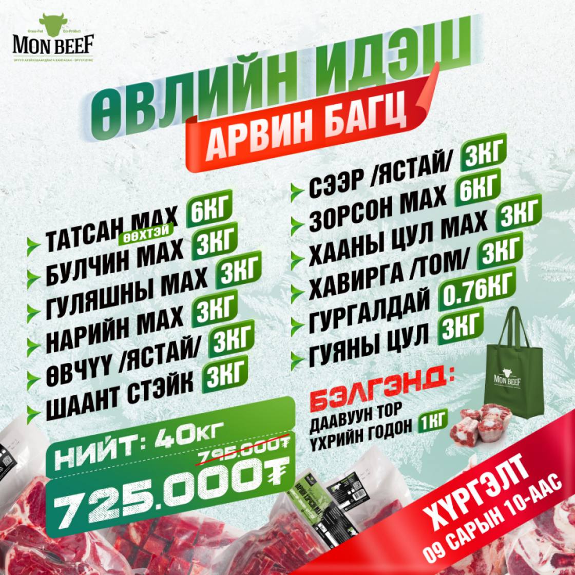 | Монбийф брэнд- Өвлийн идэшний багцаа хямдралтай үнээр хүргүүлэн аваарай |