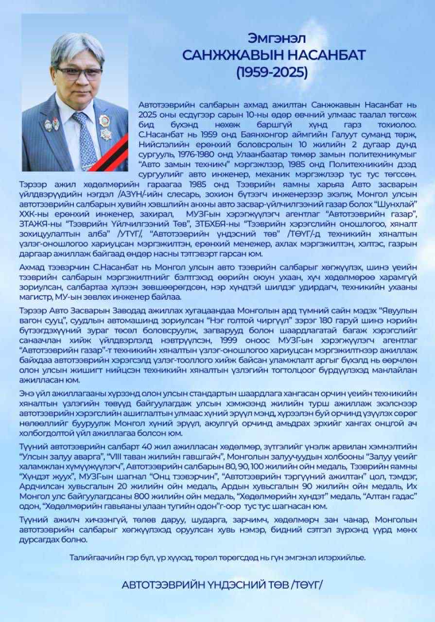 Талийгаачийн гэр бүл, үр хүүхэд, төрөл төрөгсдөд нь гүн эмгэнэл илэрхийлье.