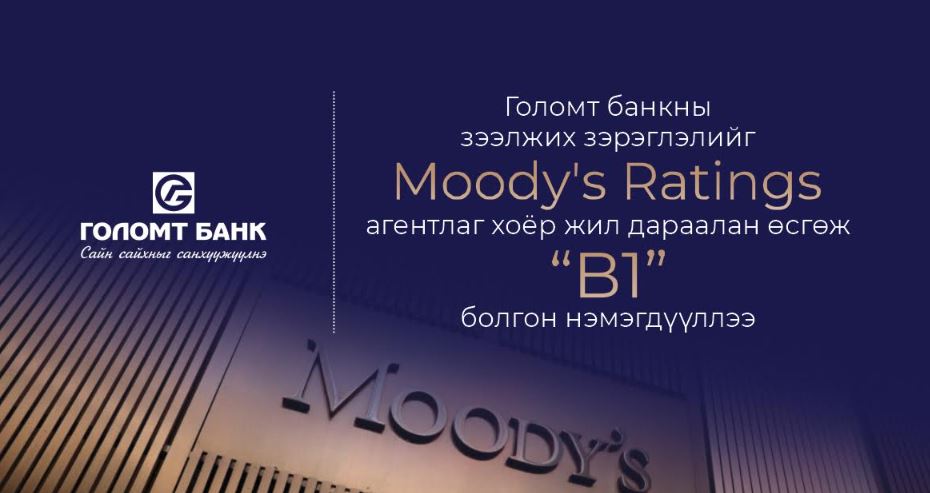 | Голомт банкны зээлжих зэрэглэлийг Moody’s Ratings агентлаг хоёр жил дараалан өсгөж “B1” болгон нэмэгдүүллээ |