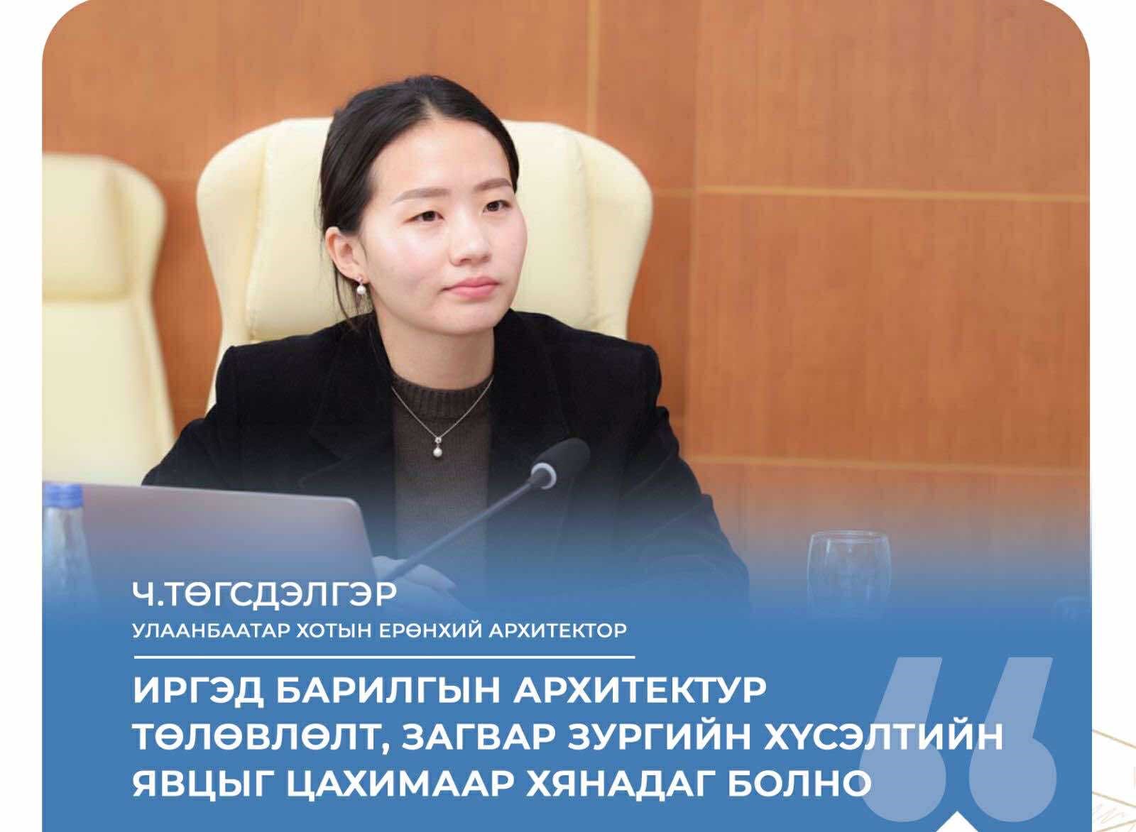 Иргэн, ААН, байгууллага шинээр барилга барих, өргөтгөх болон буулгаж шинээр барих зэрэг тохиолдолд албан ёсны баримт бичгийг бүрдүүлдэг. Ингэхдээ архитектур төлөвлөлтийн даалгавар, загвар зургийн хүсэлтээ нийслэлийн Хот байгуулалт, хотын стандартын газар ирүүлдэг. Тус хүсэлтийг ганц нийслэлийн Ерөнхий архитектор хянан хэлэлцээд шийдвэрлэхгүй. Мэргэжлийн зөвлөлийн гишүүдээр бүх стандарт, норм ямар байх ёстой талаар хэлэлцүүлж, тус бүр зөвшөөрсний үндсэн дээр хамгийн сүүлд нийслэлийн Ерөнхий архитекторын гарын үсгээр баталгааждаг үйл явц юм. Мөн шаардлага хангаагүй бол зөвлөмж өгч буцаахаас өөр аргагүй.