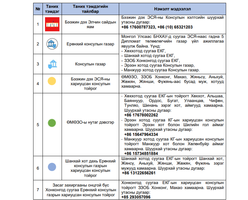 | ЗӨВЛӨМЖ: БНХАУ-д зорчихдоо Дипломат төлөөлөгчийн газартай холбогдож зөвлөгөө, мэдээлэл аваарай |