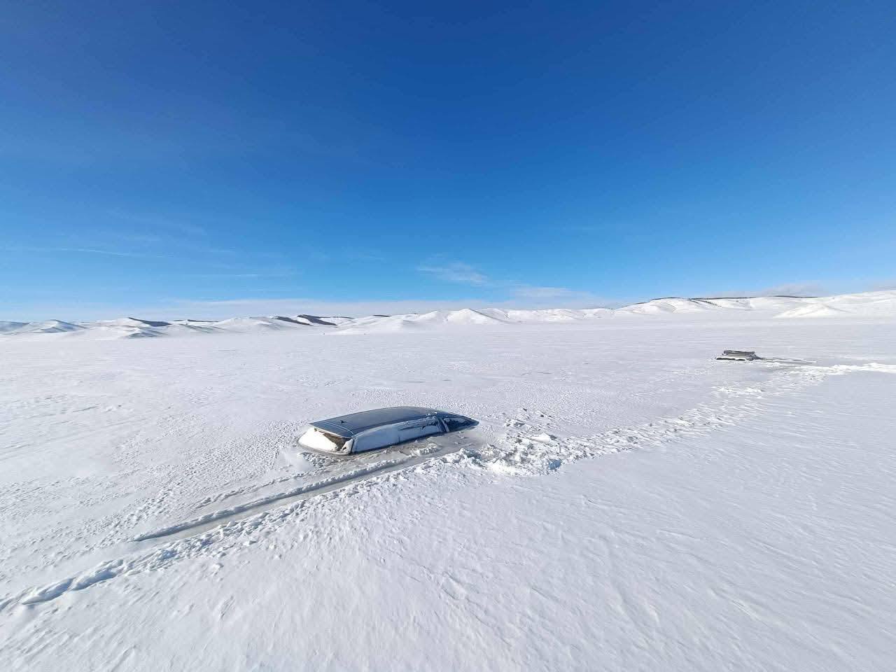 Нуурын эргээс 280 орчим метрийн зайд “Тоёота пробокс” загварын суудлын цөмөрсөн байгааг татан гаргахаар ажилласан боловч нуурын мөс хэт нимгэн байгаа тул татан гаргах ажиллагааг түр зогсоогоод байна.