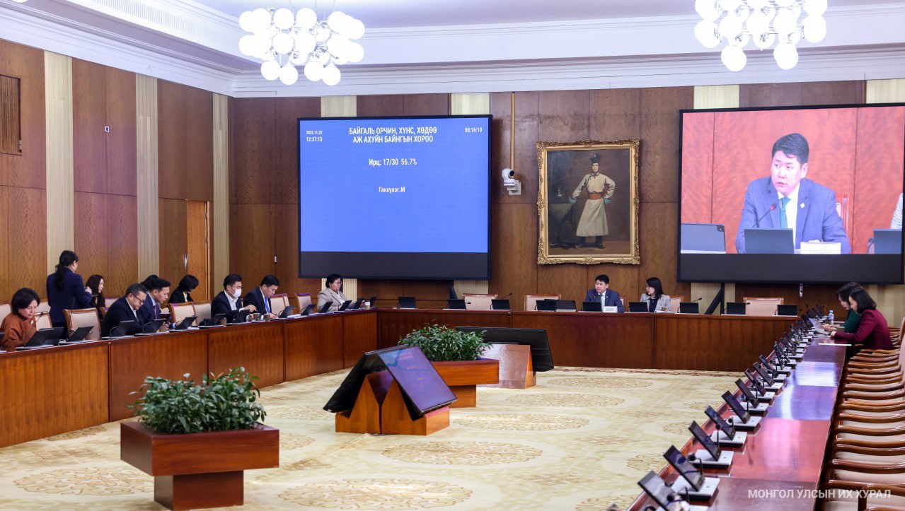 Улсын Их Хурлын Байгаль орчин, хүнс, хөдөө аж ахуйн байнгын хорооны өнөөдрийн /2025.11.25/ хуралдаанаар хоёр асуудал хэлэлцэн шийдвэрлэв.