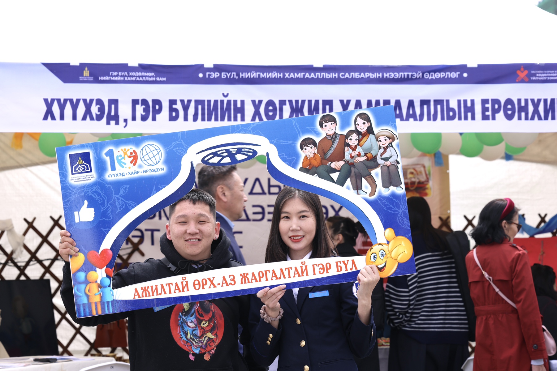 Дэлхий нийтээр жил бүрийн тавдугаар сарын 15-ны өдрийг “Олон улсын гэр бүлийн өдөр” болгон тэмдэглэсээр 31 дэх жилтэйгээ золгож байна. Энэ өдрийн хүрээнд “Ажилтай өрх - Аз жаргалтай гэр бүл” нээлттэй өдөрлөг Сүхбаатарын талбайд боллоо. Өдөрлөгт Гэр бүл, хөдөлмөр, нийгмийн хамгааллын яамны харьяа Хүүхэд, гэр бүлийн хөгжил хамгааллын ерөнхий газар, Хөдөлмөр, халамжийн үйлчилгээний ерөнхий газар, Нийгмийн даатгалын ерөнхий газар, Хөгжлийн бэрхшээлтэй хүний хөгжлийн ерөнхий газар зэрэг байгууллагууд оролцлоо. 2024 онд Монгол Улсын Засгийн Газар гэр бүлд суурилсан хүн амын хөгжлийг Засгийн газрын тэргүүлэх зорилтын нэг гэж үзэн “Гэр бүл, хөдөлмөр, нийгмийн хамгааллын яам”-ыг байгуулсан билээ. Нийгмийн үндсэн нэгж “ГЭР БҮЛ”-ийг дэмжих, ялангуяа хүүхэд, гэр бүлийн хөгжлийн асуудлыг цогцоор анхааран ажиллаж байна. Манай яамнаас хүн ам, гэр бүлийн хөгжлийг дэмжиж, Гэр бүлийн хөгжлийг дэмжих тухай анхдагч хуулийн төслийг боловсруулж байна. Хуулийн төсөл батлагдсанаар гэр бүлд ээлтэй орчин бүрдүүлэх, ажил, амьдралын тэнцвэрийг хангах, гэр бүлийг дэмжих үйл ажиллагааны чиглэл, хүүхэд, эх эцэгт олгох мөнгөн дэмжлэг, гэр бүлийн хөгжлийг дэмжих тогтолцоо бүрдэнэ. “АЖИЛТАЙ ӨРХ-АЗ ЖАРГАЛТАЙ ГЭР БҮЛ” өдөрлөгийн үеэр дараах төрийн үйлчилгээг хүргэж байна. Үүнд: Хүүхэд, гэр бүлийг дэмжихэд чиглэсэн үйлчилгээ