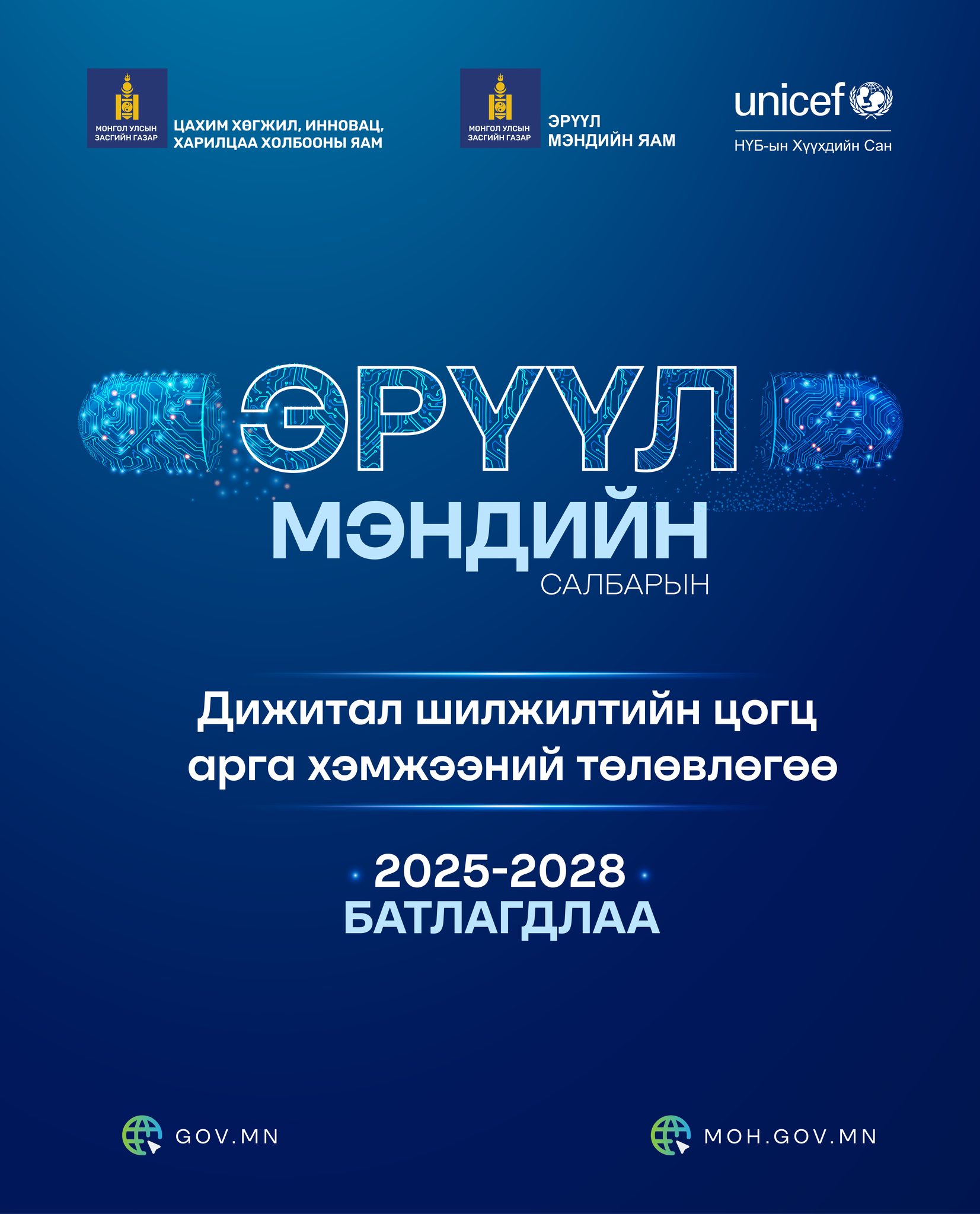 Энэ дагуу Цахим хөгжил, инновац, харилцаа холбооны сайд Ц.Баатархүү, Эрүүл мэндийн сайд Т.Мөнхсайхан нар хамтран “Эрүүл мэндийн салбарын дижитал шилжилтийн цогц арга хэмжээний төлөвлөгөө (2025-2028)”-г баталлаа.