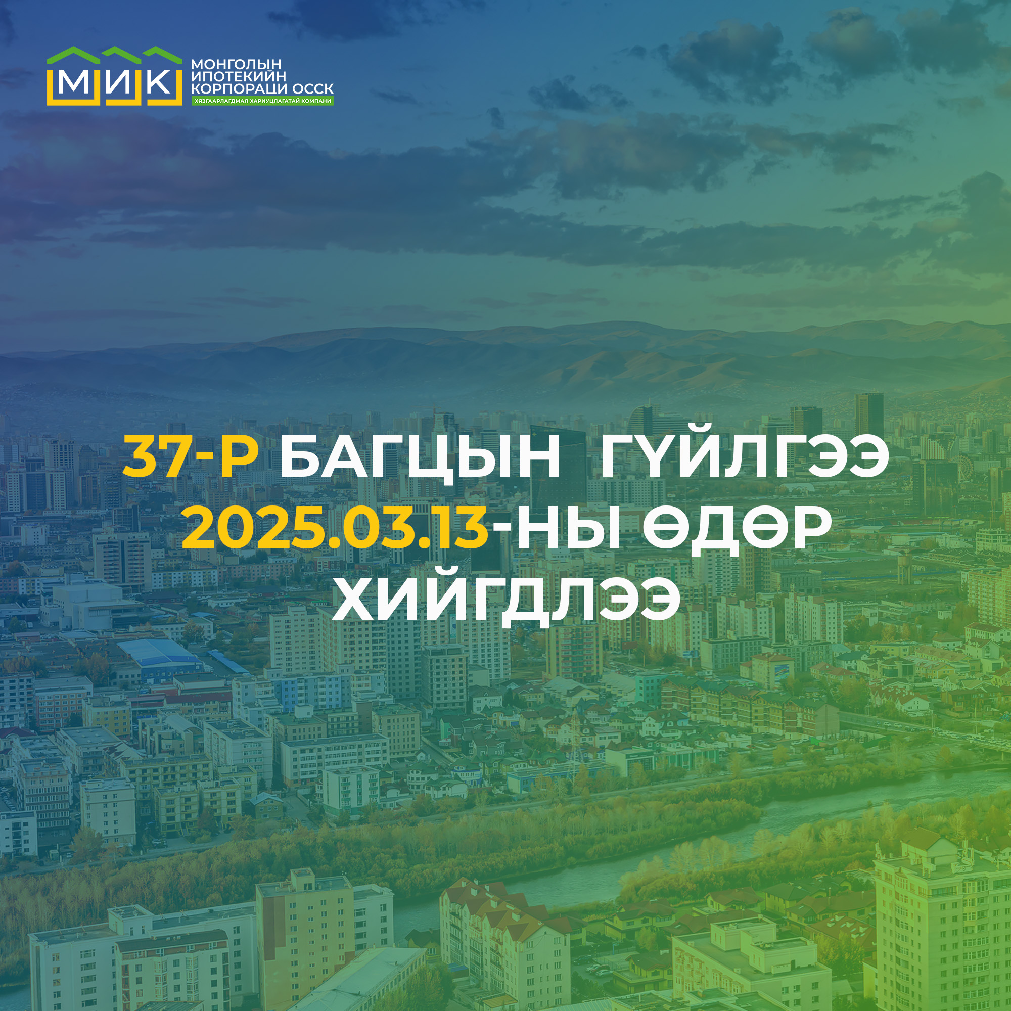 Санхүүгийн зохицуулах хорооноос олгосон тусгай зөвшөөрлийн дагуу "Монголын Ипотекийн Корпораци ОССК” (МИК) ХХК-ийн үүсгэн байгуулсан “МИК Актив гучин долоо ТЗК” ХХК нь банкнуудаас 559.51 тэрбум төгрөгийн дүн бүхий ипотекийн зээлийг багцлан худалдан авч 30 хүртэлх жилийн хугацаатай ипотекийн зээлээр баталгаажсан бонд (ИЗББ)-ыг 2025 оны 3 дугаар сарын 13-ны өдөр гаргалаа.