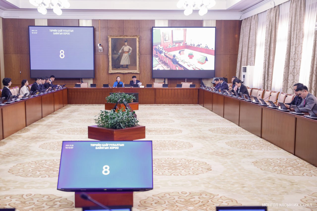 Улсын Их Хурлын Төрийн байгуулалтын байнгын хорооны өнөөдрийн /2025.12.23/ хуралдаан УИХ-ын гишүүн ААриунзаяа, Ж.Бат-Эрдэнэ, Б.Батбаатар, Ж.Батжаргал, Б.Баярбаатар, Э.Болормаа, С.Бямбацогт, А.Ганбаатар, Ц.Идэрбат, Ч.Лодойсамбуу, Ч.Номин, Б.Пүрэвдорж, Ц.Сандаг-Очир, Б.Хэрлэн, О.Цогтгэрэл, Л.Энх-Амгалан, Д.Энхтуяа нар ирснээр 53.1 хувийн ирцтэйгээр эхэллээ.
