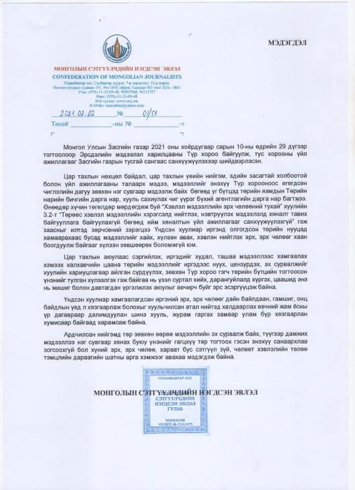 | Эрсдэлийн мэдээлэл харилцааны Түр хороог эсэргүүцэн мэдэгдэл гаргав |