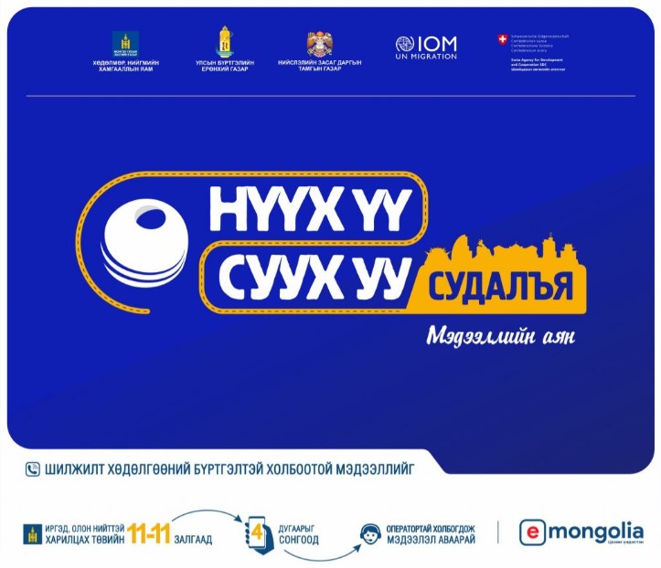 Нэгдсэн Үндэстний Байгууллагын Шилжилт Хөдөлгөөний Байгууллага санаачлан Хөдөлмөр, Нийгмийн Хамгааллын Яам, Улсын Бүртгэлийн Ерөнхий Газар, Нийслэлийн Засаг Даргын Тамгын Газар, Швейцарын Хөгжлийн Агентлаг хамтран “НҮҮХ ҮҮ, СУУХ УУ СУДАЛЪЯ” мэдээллийн аяныг өнөөдөр албан ёсоор орон даяар эхлүүллээ.