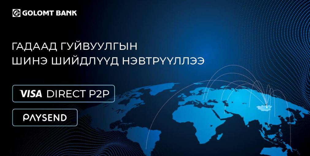Голомт банк харилцагчдынхаа олон улсын төлбөр тооцооны хэрэгцээнд нийцсэн, найдвартай, орчин үеийн дижитал санхүүгийн шийдлүүдийг тасралтгүй санал болгож ирсэн. Энэ хүрээнд олон улсын мөнгөн гуйвуулгын үйлчилгээнд тэргүүлэгч Visa Worldwide Pte. Limited-ийн Visa Direct P2P болон Paysend PLC байгууллагын Paysend үйлчилгээг амжилттай нэвтрүүлж, харилцагчдадаа олон улсын шилжүүлгийг илүү хялбар, найдвартай гүйцэтгэх боломжийг олгож байна. Ингэснээр харилцагчид SocialPay аппликэйшнийг ашиглан өөрийн Голомт банкны данснаас олон улсын банкны данс руу гадаад гүйлгээ, шилжүүлгийг гар утсаараа хэдхэн хормын дотор гүйцэтгэх боломжтой боллоо.