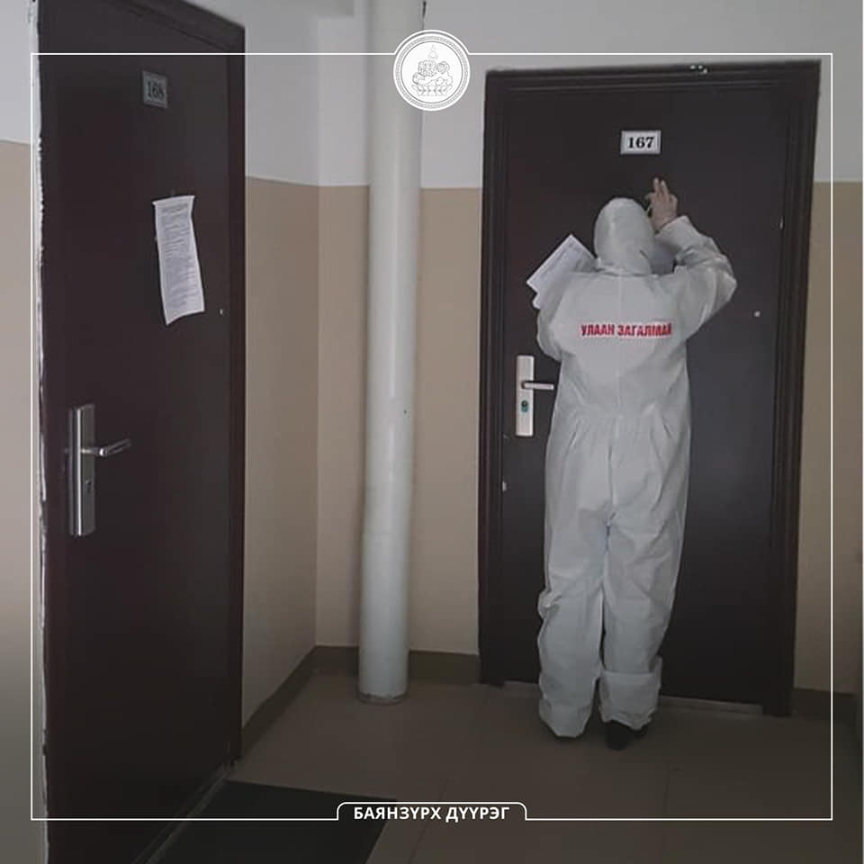 Баянзүрх дүүргийн Онцгой комисс 14 дүгээр хороо Моннисийн 123 а, 123 б байранд эрүүл мэндийн төвийн хүсэлтийн дагуу хөл хорио тогтоож цагдаагийн хамгаалалтанд авлаа. Хамгаалалтанд долоон алба хаагч хэв журам сахиулах чиглэлээр ажиллаж байна. Түүнчлэн Улаан загалмайн хорооноос арга зүйч, гамшигтай тэмцэх багийн гишүүн нар зөвлөмж хүргүүллээ.