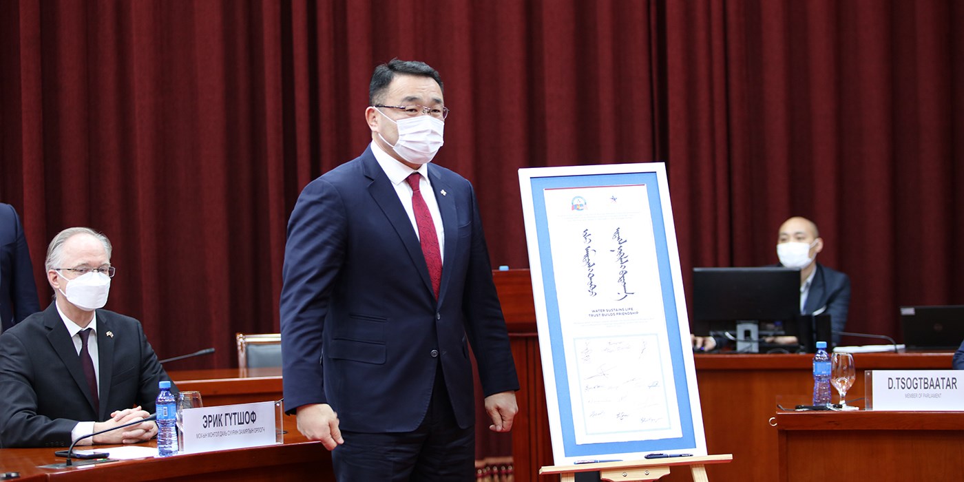 Ёслолын арга хэмжээний төгсгөлд Компакт гэрээ хүчин төгөлдөр болсныг баталгаа болгон монгол бичгийн уран бичлэгээр “Ус амьдралыг тэтгэж, итгэл нөхөрлөлийг бататгана” хэмээн бичсэн тунхаглалд хүндэт зочид гарын үсэг зурж, дурсгалын зураг авахуулав.
