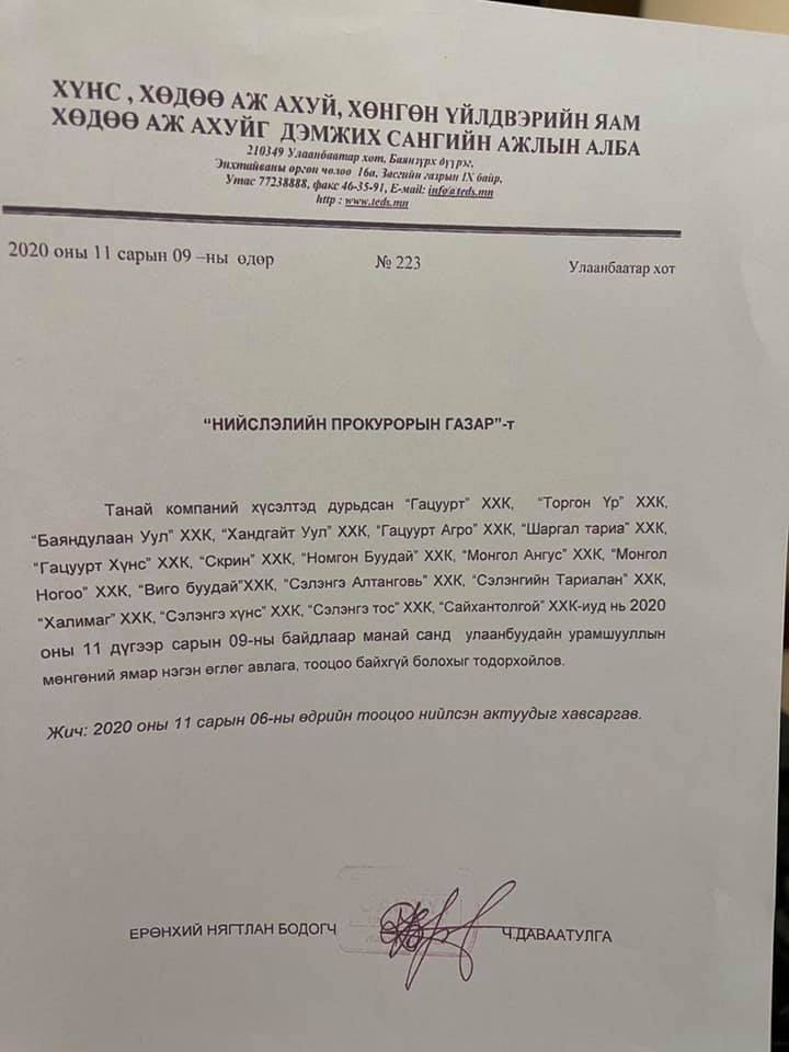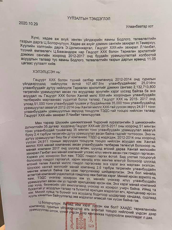 “Гацуурт” ХХК-ийн ерөнхий захирал Л.Чинбатыг эрэн сурвалжилж байна гэх мэдээлэл хэвлэл мэдээллийн хэрэгслээр гарсан. Тэгвэл уг мэдээлэлд Хөдөлмөрийн баатар Л.Чинбат “Намайг цагдаагаас эрэн сурвалжилж эхэллээ гэжээ. Хаврын тариалалтын бэлтгэл ажлаар Сэлэнгэ аймгийн Цагааннуур суманд ажиллаж байна аа. Эрүүгийн Цагдаагийн Газраас надад нэг ч удаа өөрт мэдэгдээгүй мөн манай өмгөөлөгчид 2021 оны дөрөвдүгээр сарын 26-ны өдөр намайг дуудан ирүүлэх бичиг өгчихөөд уг өдөр нь болоогүй байхад оргодол мэтээр улс орон даяар зарлаж, эрэн сурвалжилжээ. Урамшууллын мөнгө илүү авсан хэргээр тав дахь жилдээ шалгагдаж байна. “Гацуурт” ХХК-ийг үүсгэн байгуулж, сүүлийн 20 гаруй жил газар тариалангийн салбарт үйл ажиллагаа явуулахдаа хавар, зун, намартаа өглөө 05:00 цагаас шөнийн 00:00 цаг хүртэл тариан талбай дээр ажиллаж өнждөг. Энэ хугацаанд ялангуяа цар тахалтай энэ хүнд цаг үед монголчууддаа эх орныхоор хөрсөнд тарьж, ургуулсан эрүүл хүнсийг хямд үнээр хүргэх зорилготой ажилласаар ирсэн. Улсаас нэг ч төгрөг хууль бусаар авч, хулгай хийж үзээгүй гэдгээ хариуцлагатайгаар хэлье. Тариалан Эрхлэлтийг Дэмжих Сантай дөрвөн удаа урамшууллын мөнгөний асуудлаар тооцоо нийлээд өглөг, авлагагүй болохоо баталгаажуулсан актууд, урамшууллын мөнгөтэй холбоотой санхүүгийн баримтуудыг үзээд та бүхэн дор бүрнээ дүгнэлтээ хийнэ биз ээ. Хууль хяналтын байгууллагын дарамт шахалтад манай улсад шударгаар хөдөлмөрлөж, ажиллаж амьдрахад үнэхээр хэцүү болжээ. Одоо бол маш их туйлдаж байна” гэсэн хариуг нүүр хуудсаараа илэрхийлээд байгаа юм.