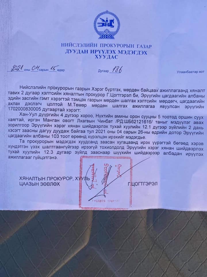 Харин түүнийг эрэн сурвалжилж байгаа тухай мэдээллийг Цагдаагийн ерөнхий газрын цахим хуудаст өнөөдөр нийтэлсэн юм. Тодруулбал, “Цагдаагийн байгууллагаас түүнийг эрэн сурвалжлах болсон үндэслэлээ мөрдөн шалгах ажиллагааны явцад оршин суугаа газраа өөрчилсөн талаараа мэдэгдээгүй, холбоо барих утасны дугаар руу залгахаар дуудлагад хариу өгөхгүй эрүүгийн хэрэг хянан шийдвэрлэх ажиллагаанд саад учруулахгүй байх үүргээ биелүүлэхгүй таслан сэргийлэх арга хэмжээг зөрчсөн тул эрэн сурвалжилж байна” гэсэн байгаа билээ.