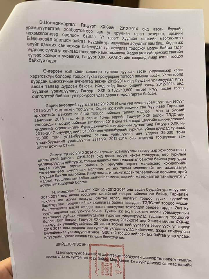 Улсаас нэг ч төгрөг хууль бусаар авч, хулгай хийж үзээгүй гэдгээ хариуцлагатайгаар хэлье.
