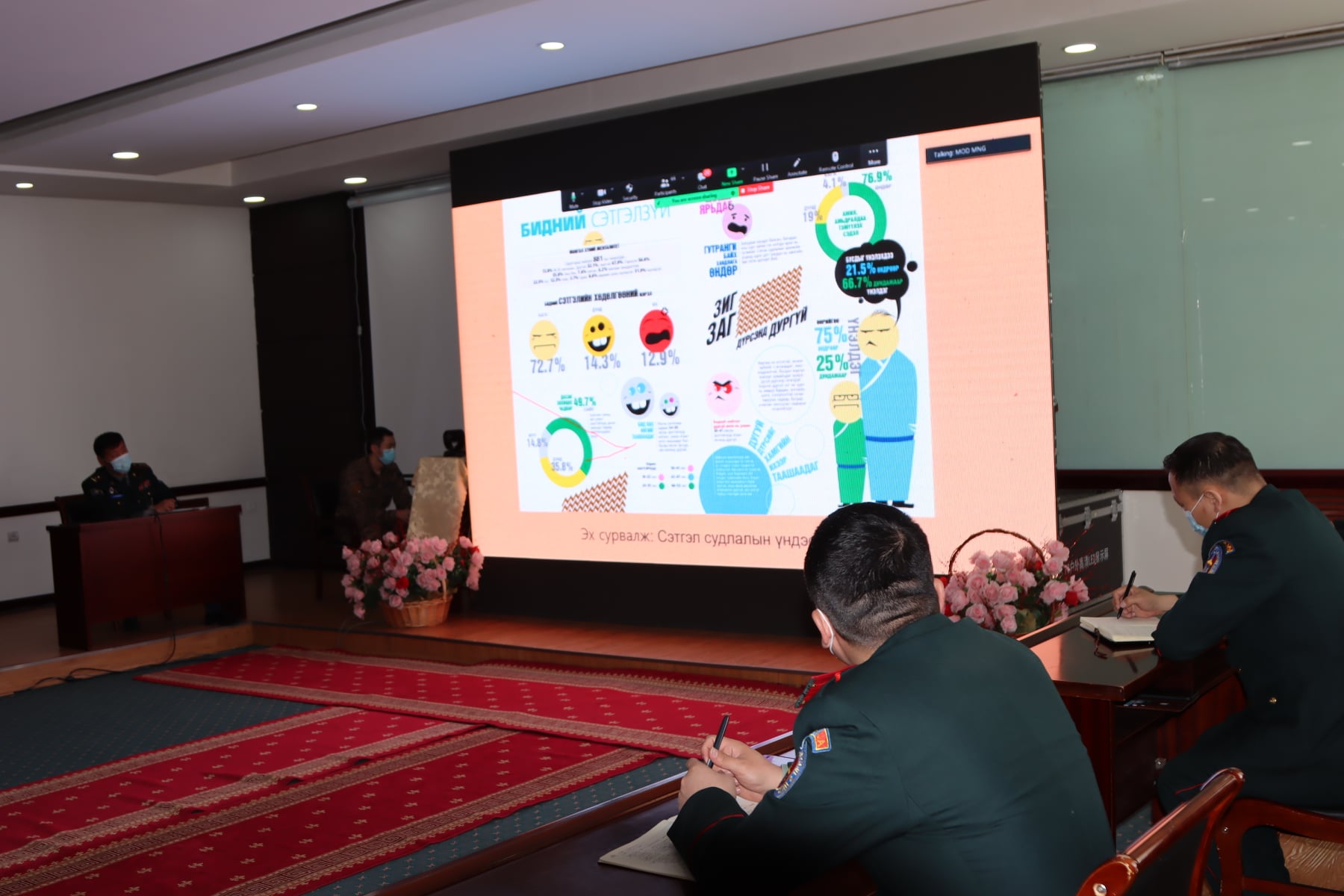 Батлан хамгаалах яам, ЗХЖШ-аас Зэвсэгт хүчний Төрлийн цэргийн командлалууд, Барилга инженерийн цэргийн удирдах газар болон Зэвсэгт хүчний нэгтгэл, ангиудын захирагчийн орлогч, сэтгэл зүйч, соёл хүмүүжлийн офицеруудыг хамруулсан нэгдсэн зөвлөгөөнийг цахим хэлбэрээр зохион байгуулав.
