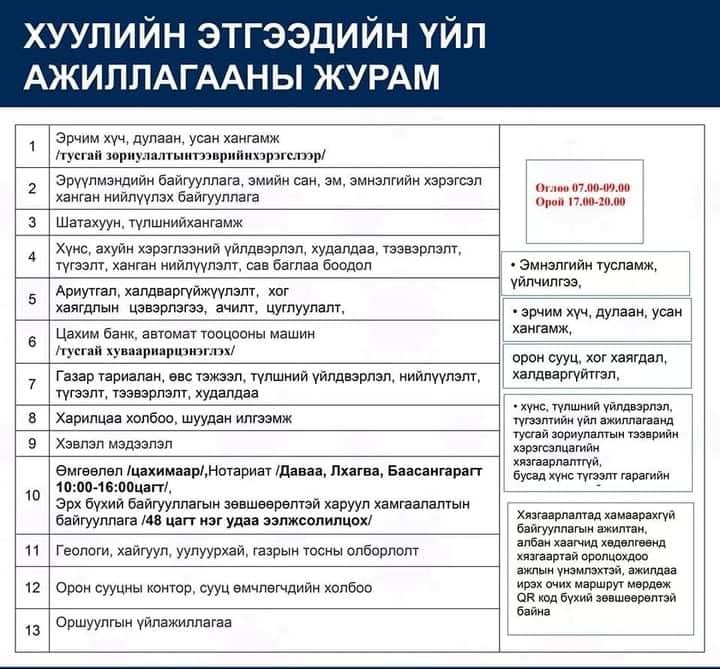 | Хөл хорионы өдрүүдэд хэрэгжих үйл ажиллагаа |
