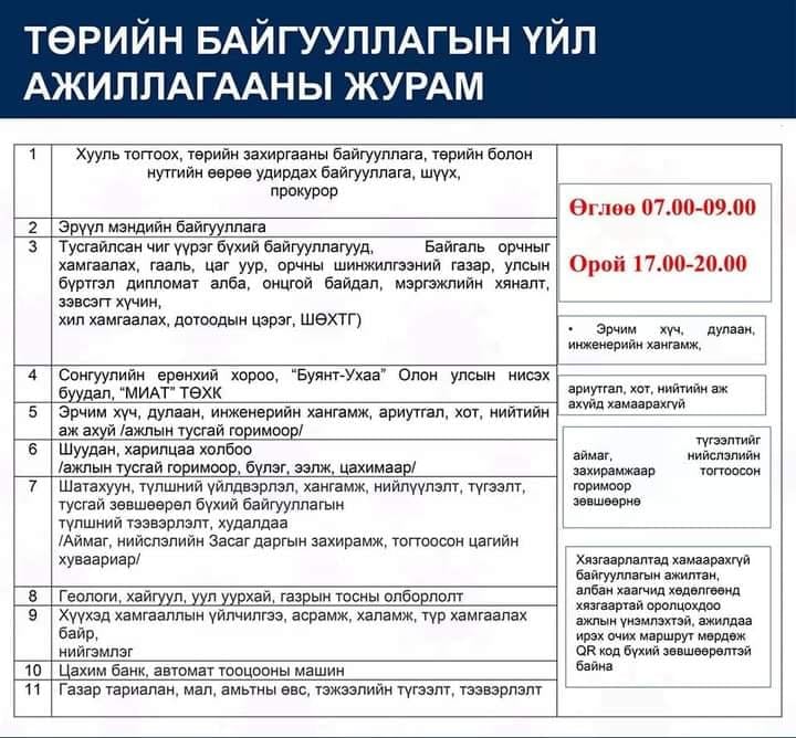 Монгол Улсын Засгийн газрын 2021 оны дөрөвдүгээр сарын 23-ны өдрийн 105 дугаар тогтоолоор дөрөвдүгээр сарын 25-наас тавдугаар сарын 8-ны өдрийн 06:00 цаг хүртэл 12 хоногоор бүх нийтийн бэлэн байдлын зэргийн хугацааг сунгасан.