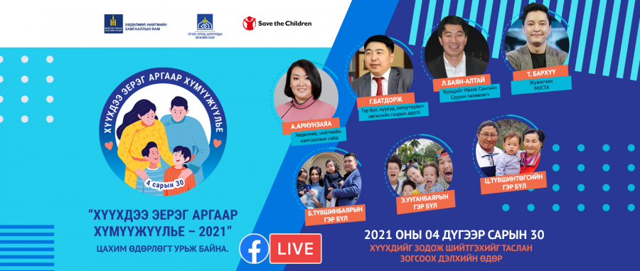 Цар тахлын хөл хориотой цаг үед "Хүүхдийг зодож шийтгэхийн эсрэг олон улсын өдөр"-ийг ХНХЯ, Гэр бүл, Хүүхэд, залуучуудын хөгжлийн газар, Хүүхдийг Ивээх Сан хамтран “Хүүхдээ эерэг аргаар хүмүүжүүлье” уриан дор цахим аяныг зохион байгуулж байна. Аяны хүрээнд хүүхдээ эерэг аргаар хүмүүжүүлэх аргыг заан сурталчилсан постерууд боловсруулан цацаж байгаа бөгөөд эцэг, эхчүүдэд түгээмэл тохиолддог бэрхшээлийг шийдвэрлэх теле зөвлөгөөг хүргэж байна.