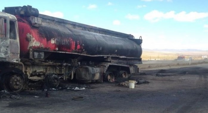 “Петро-Чайна Дачин Тамсаг” компанийн 19 дүгээр талбайгаас Сүхбаатар аймгийн Эрдэнэцагаан сумын чиглэлд “Бичигт” боомт руу нефт ачиж явсан Ханавон загварын ачааны автомашин шатжээ.
