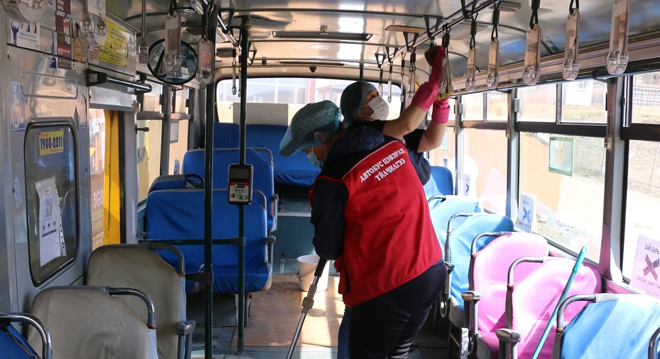 Дөрөв, тавдугаар сарын байдлаар 20 аж ахуйн нэгжийн давхардсан тоогоор нийт 26505 тээврийн хэрэгсэлд цэвэрлэгээ, халдваргүйжүүлэлтийг тогтмол хийж, нийслэлчүүддээ өдөр бүр цэвэрхэн автобусаар үйлчлэхийг зорилоо. Автобусны цэвэрлэгээ, ариутгал болон зорчигчид амны хаалттай үйлчлүүлж байгаа эсэхэд 17 улсын байцаагч өдөр бүр явцын хяналт тавин ажиллаж байна. Халдварын дэгдэлттэй үе гэлтгүй цаашид иргэдэд цэвэрхэн автобусаар үйлчлүүлэх боломжийг бүрдүүлэхийн тулд Нийслэлийн Тээврийн үйлчилгээний газар, автобус баазууд автобусны ариутгал, цэвэрлэгээг тогтмол хийж, аливаа эрсдэлээс урьдчилан сэргийлэн ажиллаж байна.