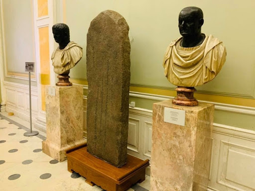 | ОХУ-ын Эрмитаж музейгээс авсан Чингисийн чулууны бичиг, хөдөө орон нутгаас татан авсан гурван дурсгалыг түр хадгалж байна |