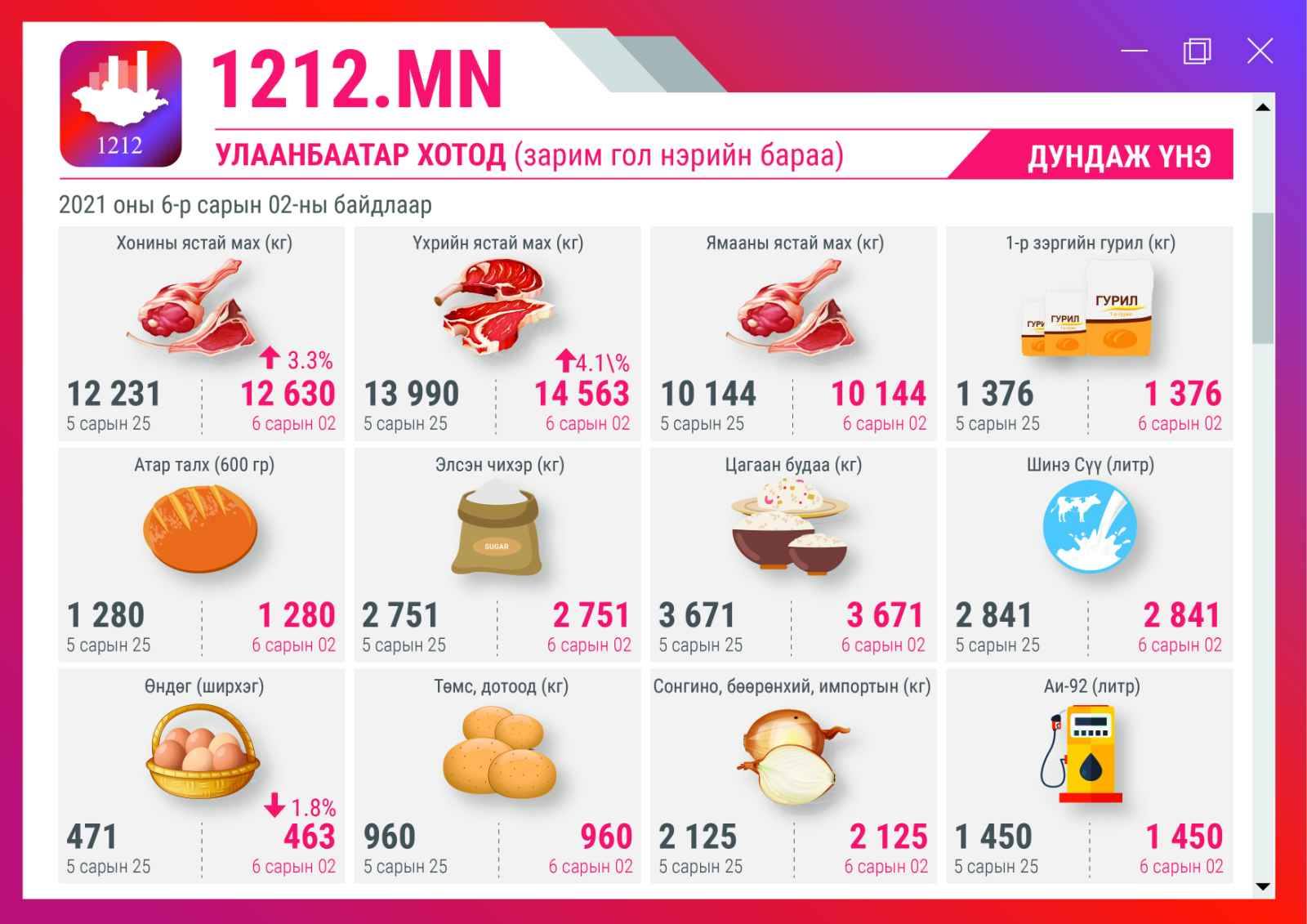 | Гол нэрийн барааны үнэ өмнөх долоо хоногоос 1.4 хувиар өсжээ |