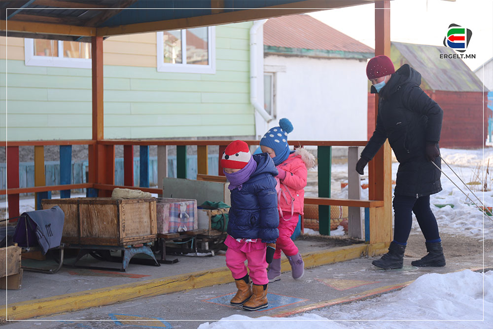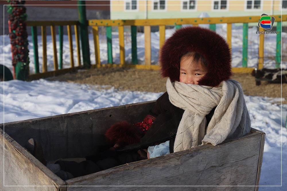 Үдийн нар тооно голлох үеэр ганц, нэг хүн ирж, цэцэрлэгийн гаднах чарганы зогсоолыг эргэж байна. Давхар дээлээ хөөргөж өмссөн бадриун эр ирээд төмөр чарган дээр жийрэглэж тавьсан зөөлөвчийг аваад явлаа. Цэцэрлэгийн хашааны хажууханд байх хүнсний дэлгүүр рүү орж, эсгий зөөлөвчийг галласан зуухны дэргэд тавиад худалдагч руу толгойгоороо дохичхоод гарав. Тус дэлгүүрийн эзэн гэх эмэгтэй “Өнөөдөр ч айхтар хүйтэн байна. Явж хүүгийнхээ чарган дээрх дээлийг авахгүй бол цаад “их хүн” чинь орой тараад хүйтэн дээлээр хөлийг нь хучвал аашилна шүү” гээд өнөө бадриун эрийн араас гарч явлаа. Эцэг, эхчүүд хүйтэнд хүүхдийнхээ чарганы дулаалгыг өдөр нь очиж аваад орой нь хүүхдээ авахаар ирэхдээ дулаан жийрэгтэй ирдэг юм байна.