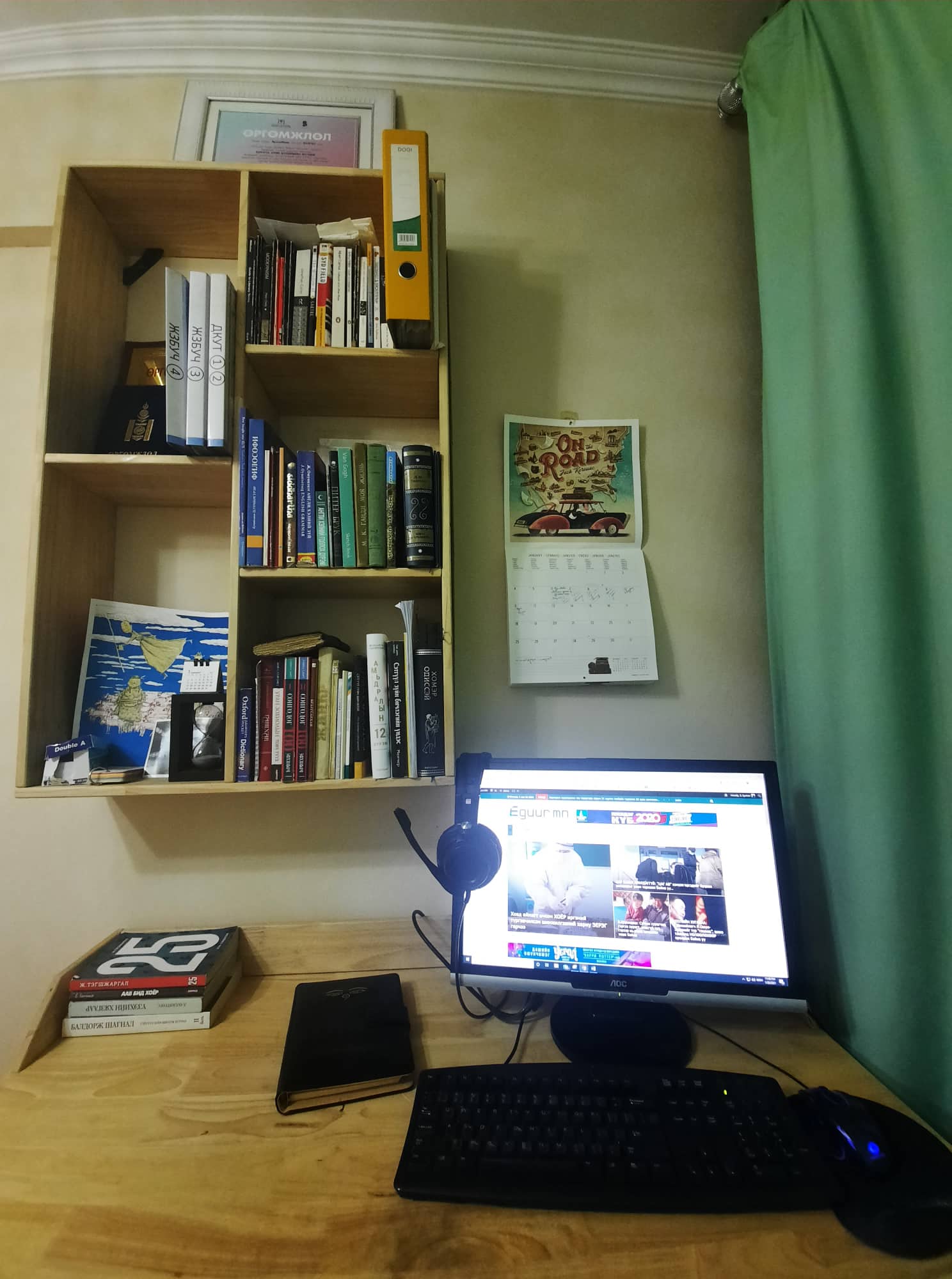 Сэтгүүлч хүний өдөр тутмын нэг хэрэглээ бол яалтчгүй тэмдэглэлийн дэвтэр, ном. Миний ажлын ширээ тийм ч том биш учраас олон ном тавих зай бараг л байхгүй. Ширээн дээрээ сүүлд уншсан ном, товхимолоо тавьсан.