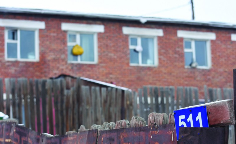 Автобусны зүүн талын буудлаас дээш 200 орчим метр яваад гүний худагтайгаа хаяа залган байх хоёр давхар тоосгон нийтийн байранд очив. Үүдний хаалга нь төмөр хийцтэй бөгөөд түрээслэгчид нь хаалгаакодоор онгойлгож ордог юм байна. Хаалгыг нь тогшин түрээслүүлэгчийг нь асуутал “Эзэн нь түр гарсан, байхгүй” хэмээн хэлэх 20 орчим насны эмэгтэй хаалга тайлан, биднийг угтав. Тэрбээр энэ жил нэгдүгээр дамжаанд элсэн суралцаж байгаа шинэхэн оюутан аж. Түүнээс түрээсийн байрных нь ханш болон бусад зүйлийн талаар тодруулахад “Нэг сарын түрээсийн төлбөр нь 180 мянган төгрөг. Барьцаа болгож мөн нэг сарын түрээс төлсөн. Төлбөрөө гурван сараар авдаг юм билээ. Дотроо халаалттай. Дээрээс нь автобусны буудал, худагтайгаа их ойрхон болохоор амар санагдсан. Харин тог, хогны мөнгө нь тусдаа. Байрны төлбөртэйгөө нийлээд 200 орчим мянга дөхөх байх. Барагцаагаар арав гаруй айл бий” гэв. Хашаанд нь гурван нүхэн жорлон зэрэгцэж харагдах бөгөөд зай бага учир үүднийхээ хаалгатай тулгах шахам байрлуулжээ.Биднийг уг нийтийн байртай танилцаж байх хооронд эзэн нь ирэв. Түүнийг н.Мөнхтуяа гэдэг бөгөөд нийтийн байр түрээслүүлээд цөөнгүй хэдэн жилийг ардаа үдэж байгаа аж.