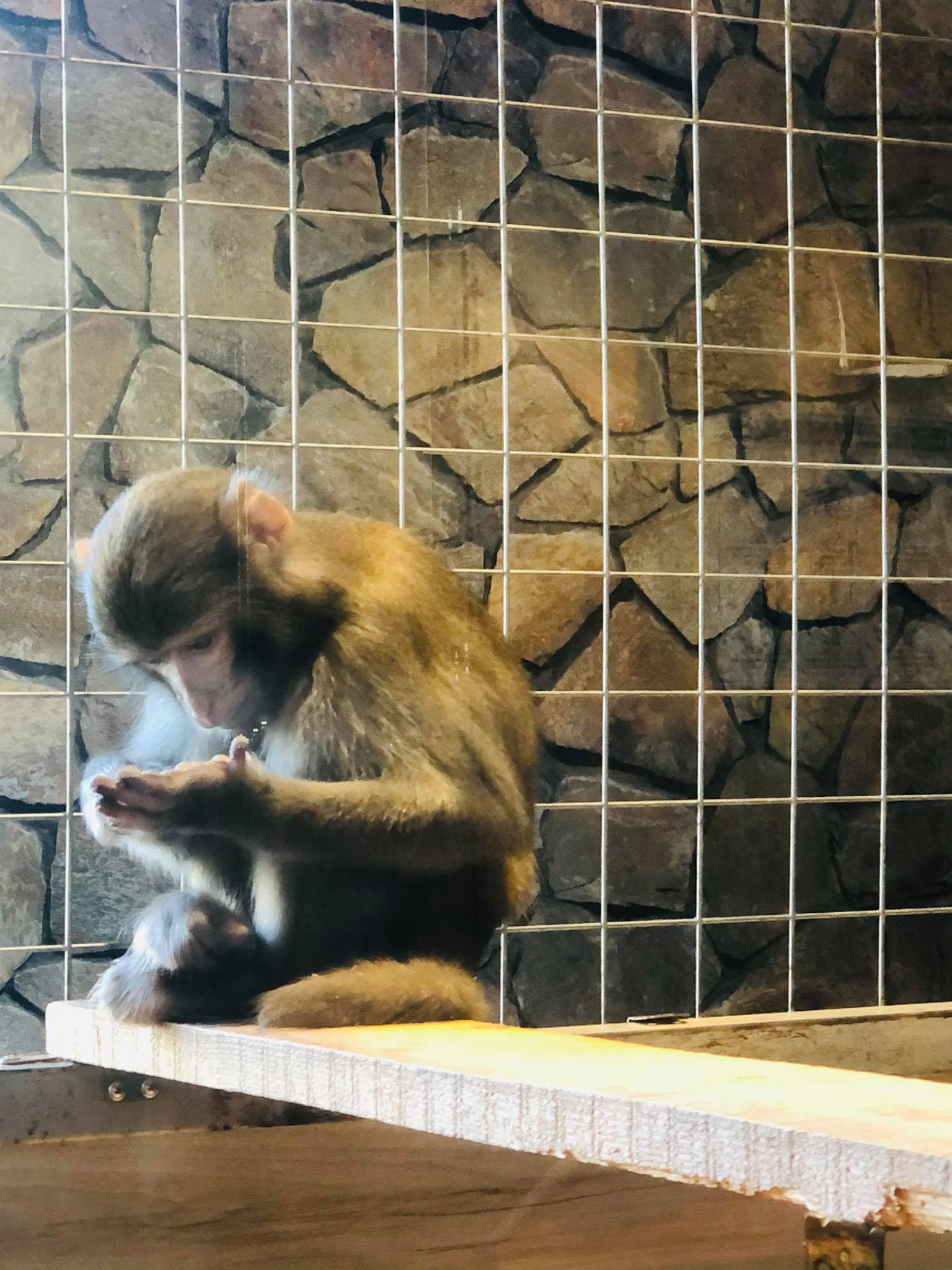 Амьтдыг ажиглаж, шувуудын жиргээг сонсон алхаж яваад бидний сайн мэдэх “Сүн Ү Күн” торонд томоотой гэгч нь сууж байхтай таарав. Уг нь бол энд тэнд дүүлж, дэггүйтэж байх ёстой шүү дээ. Кинон дээрээ л лав тэгдэг. Гэтэл өнөөдөр гунигласан юм уу, эсвэл бидний хэлдгээр залхуурсан ч юм уу томоотой гэгч нь сууж байх аж. Шилэн хоргон дээрх тайлбарыг нь уншвал бидний мэдэх “Сүн Ү Күн”-ийг “Макак-резус буюу нохой сармагчин гэдэг ажээ. Уг сармагчин нь усанд сайн сэлж чаддаг бөгөөд эрэгтэй макак ойролцоогоор 60, эмэгчин нь 50 сантиметрийн өндөртэй байдаг гэнэ. Тус сармагчин нь дунджаар 20-25 жил амьдардаг юм байна.