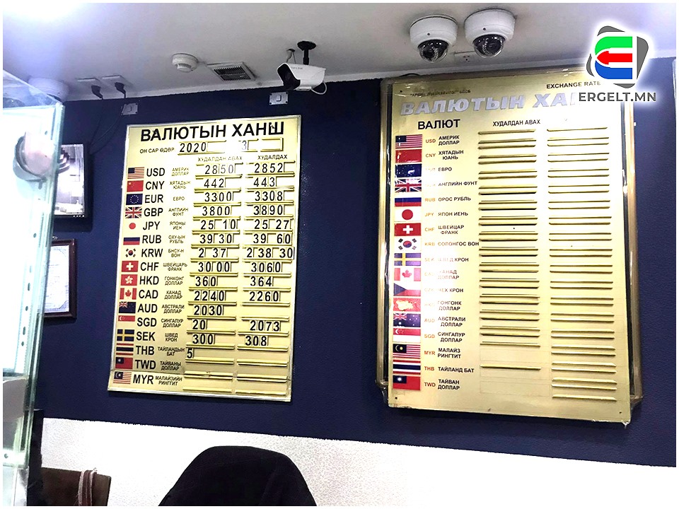 Эхлээд тус захын валютын үнэ ханштай танилцлаа. Арилжааны цэг бүрд валютийн ханштай самбар байрлана.